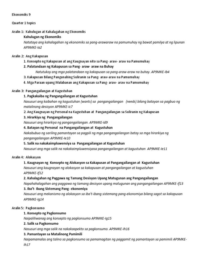 Araling Panlipunan Ikasiyam na Baitang Alternative Delivery Mode Unang Markahan Modyul 1. -nagmula sa salitang griyego na oikos sambahayan at nomos patakaran pinagsama upang mabuo ang oikonomia. College of T eacher Education.