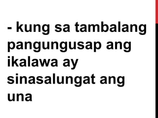 Pagbibigay-kahulugan sa konotasyon at denotasyon ng mga salita c. Pangatnig na Panubali ito ay nagsasabi ng pag-aalinlangan gaya ng. PANGATNIG TRANSITIONAL DEVICES AT 2.