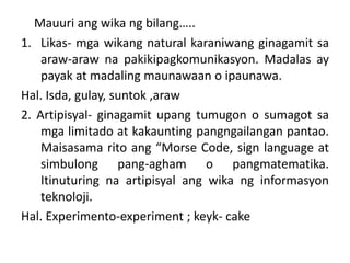 Download as PPTX PDF TXT or read online from Scribd. Ang wika ay ginagamit. Ano ano ang mga wika sa ibat ibang larangan.