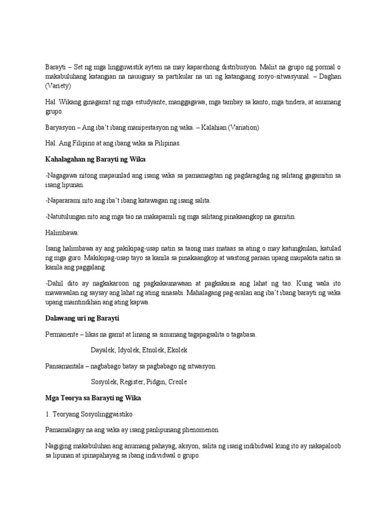 Barayti At Baryasyon Ng Wika Pdf