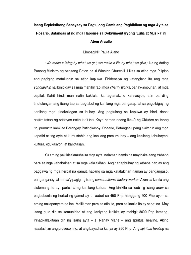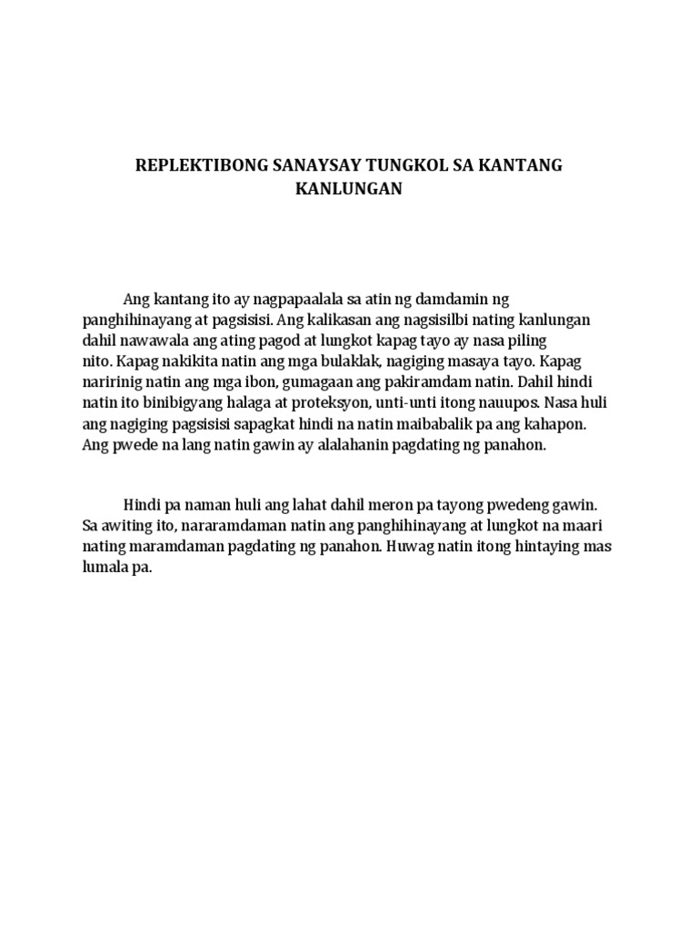 Replektibong Sanaysay Tungkol Sa Kanlungan Pdf